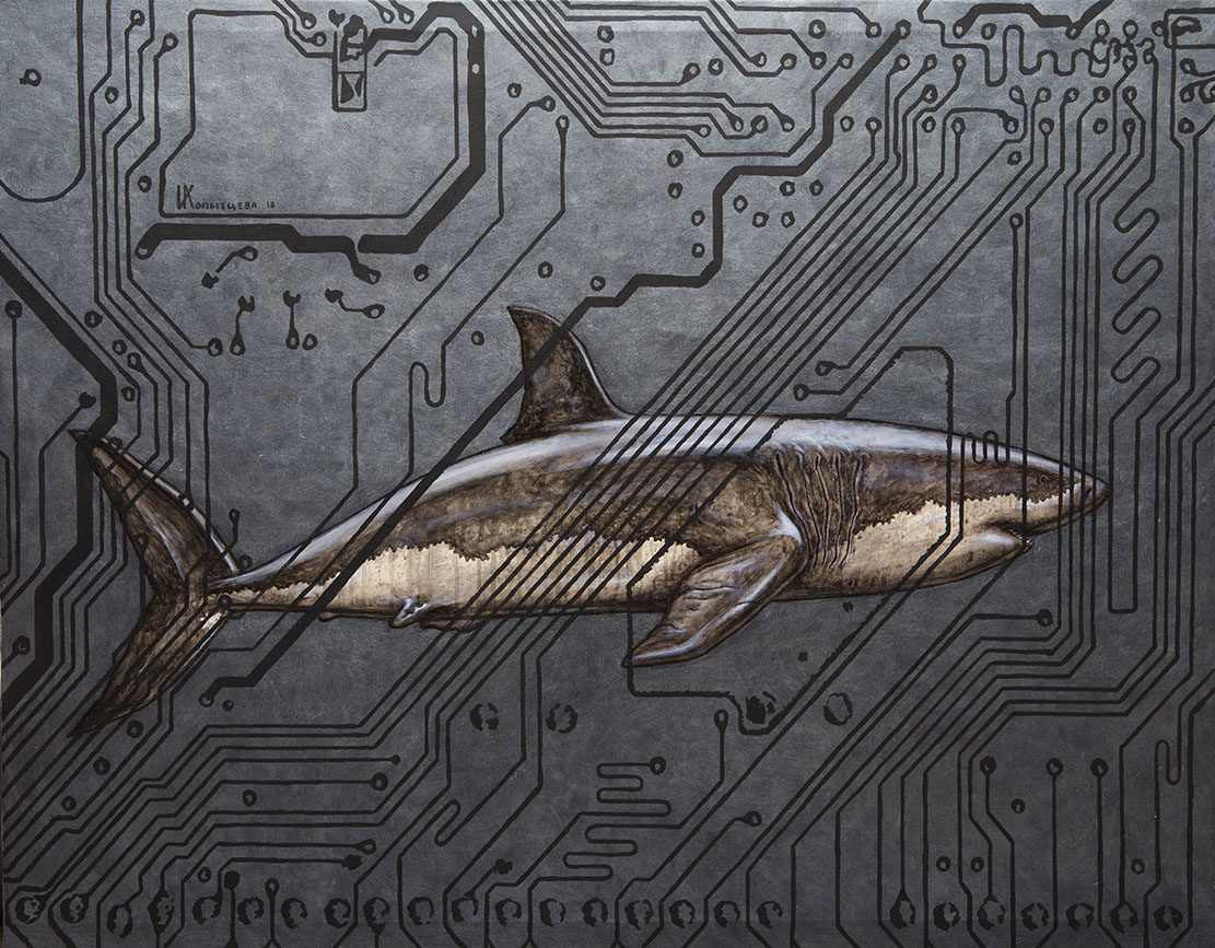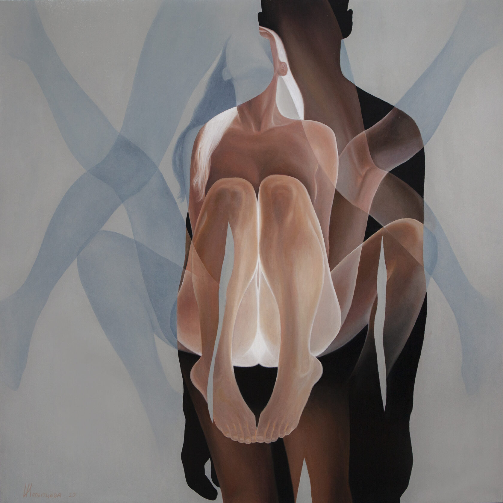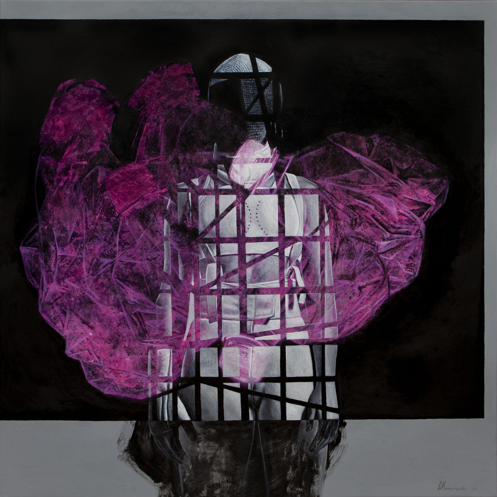 Мне интересны серые зоны человеческой психики, когда при отсутствии критического анализа люди действуют из инстинктов и аффектов, зачастую легко переступая порог морали, здравого смысла и сочувствия. Однажды приобретенная психологическая травма заставляет своего носителя постоянно себя воспроизводить. И если не отслеживать в себе эти нейронные тропинки, то можно легко превратиться в биоробота, чьи реакции, слова и поступки обусловлены наростами из контейнированной боли и страха. В этом проекте я визуализирую психическую клетку из не осозноваемых “системных ошибок” , вымещенную на поверхность как панцирь. Этот скелет сжимает невидимую форму духа. С одной стороны давая ей опору, а с другой не позволяет ни движения, ни развития.