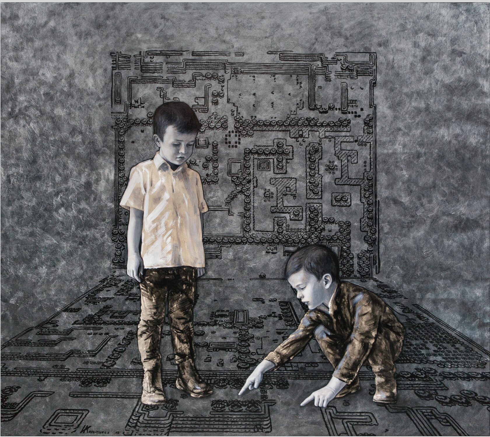 Самый распространенный в различных культурах миф о создании людей гласит о том, что боги слепили мужчину и женщину из глины и вдохнули в них жизнь. Переворачивая эту концепцию на 180 градусов, я оказываюсь по другую сторону зеркала и создаю своих персональных богов, используя тот же материал, а затем окутываю их амальгамой образов новой цифровой реальности. Эти новые божества свободны от гендера, возраста и предназначения. Они возникают, как пузыри на границе сознания, в оболочке из непредсказуемого калейдоскопа культурного опыта. Круги расходятся и боги существуют, пока вы на них фокусируетесь, а потом они перестают быть необходимы и пересобираются в новых. Человеческой психике необходимо создавать себе кумиров, чтобы самоидентифицироваться.
